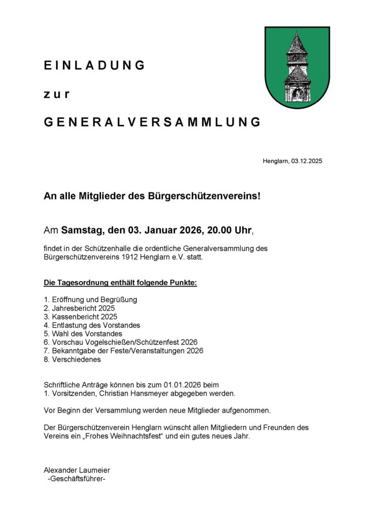 Das Vogelschießen am Samstag, den 26.04.2025 bildete traditionell den Auftakt des diesjährigen Schützenfestes des Bürgerschützenvereins Henglarn. Gesucht wurde der Nachfolger des Königs von 2024, Markus Köhler. Bevor es jedoch um die neue Königswürde ging, schossen die Jungschützen ihren neuen Regenten aus. Um genau 16:20 Uhr und mit dem 66. Schuss sicherte sich Matthias Agethen die Würde des Jungschützenkönigs.
