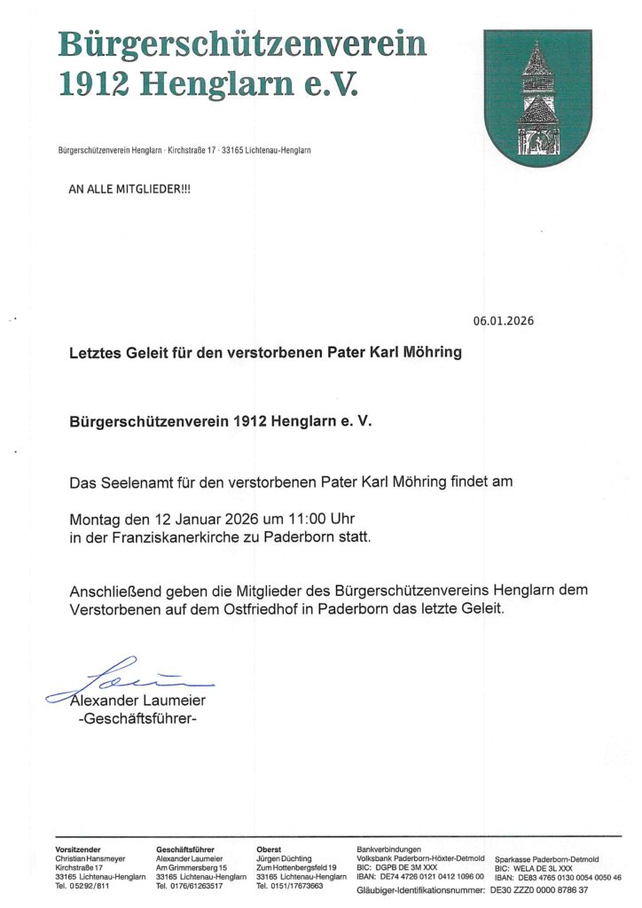 Der Bürgerschützenverein Henglarn hat am 03.01.2025 zur alljährlichen Generalversammlung geladen. In dieser Sitzung wurde auch der neue Teil-Vorstand (2.Hälfte) gewählt.